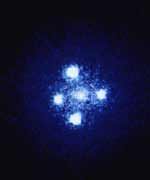 To get useful information from the quasar, you have to collect light over long periods of time (months to years) and use special analytical algorithms to pull the resulting data together. The method used by Lee and associates is called LOHCAM (LOcal Hae CAustic Modeling). (HAE itself is an acronym for High Amplification Events). Using LOHCAM and data available from OGLE (Optical Gravitational Lensing Experiment) and GLIPT (Gravitational Lens International Time Project), the team determined not only that LOHCAM works as hoped but that QSO2237+0305 may include a detectable accretion disk (from which it draws matter to power its light engine). The team has also determined the approximate mass of the quasars black hole, the size of the ultraviolet region radiating from it, and estimated the transverse motion of the black hole as it moves relative to the spiral galaxy.