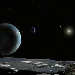 Pluto & Charon viewed from the surface of one of Pluto's newly discovered candidate satellites. Image credit: David A. Aguilar (CfA).