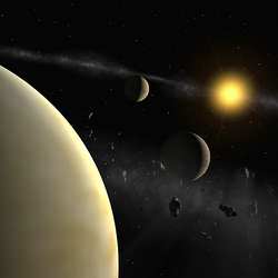 An artist's impression of a planetary system around HD 69830. Image credit: ESO.