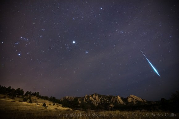 Geminid Meteor Shower above the Flatirons, Boulder, CO. Credit: