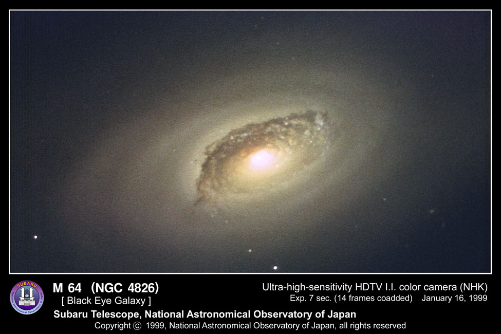 Top M64 image credit, Palomar Observatory courtesy of Caltech, M64 courtesy of 2MASS, M64 Hubble Image, M64 courtesy of Suburu – National Astronomical Observatory of Japan , M64 courtesy ING Archive and Nik Szymanek – Jacobus Kapteyn Telescope and M64 color image courtesy of NOAO/AURA/NSF.