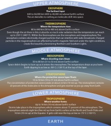 Inset images – Top: layers of the atmosphere, via the Smithsonian/NMNH. Bottom: Scanning electron microscope image of atmospheric bacterial spores collected from Mt. Bachelor Observatory (NASA/KSC)