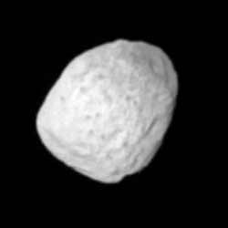 This image was taken in visible light with the Cassini spacecraft narrow-angle camera on May 20, 2005, at a distance of approximately 357,000 kilometers (222,000 miles) from Janus and at a Sun-Janus-spacecraft, or phase, angle of 6 degrees. Resolution in the original image was 2 kilometers (1 mile) per pixel. The view was magnified by a factor of two and contrast-enhanced to aid visibility of the moon's surface.