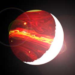 Artist illustration of the planet orbiting the sun-like star HD 149026. Image credit: U.C. Santa Cruz.
