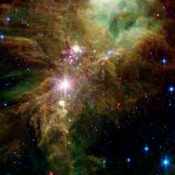 "We see the dramatic-looking emission of cold gas -- clouds that look like thunderheads. We see when the massive molecular cloud breaks up and begins to condense into clumps of stars," Young said. "And, for the first time, because of Spitzer's sensitivity, we can see individual stars roughly the size of our sun tightly packed within those clumps." The cluster of stars is so tightly packed that they must be less than 100,000 years old, he added.