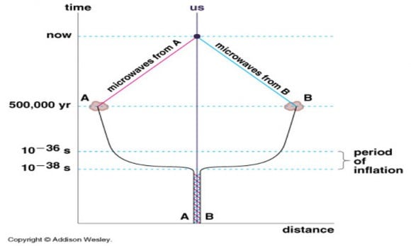 The horizon problem in Big Bang cosmology. How is it that distant parts of the universe possess such similar physical properties? Credit: Addison Wesley.[/caption]