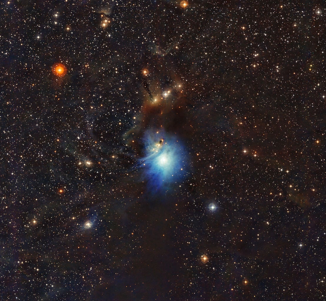 A newly formed star lights up the surrounding cosmic clouds in this image from ESO's La Silla Observatory in Chile. Dust particles in the vast clouds that surround the star HD 97300 diffuse its light, like a car headlight in enveloping fog, and create the reflection nebula IC 2631. Although HD 97300 is in the spotlight for now, the very dust that makes it so hard to miss heralds the birth of additional, potentially scene-stealing, future stars. Imsge: ESO[/caption]