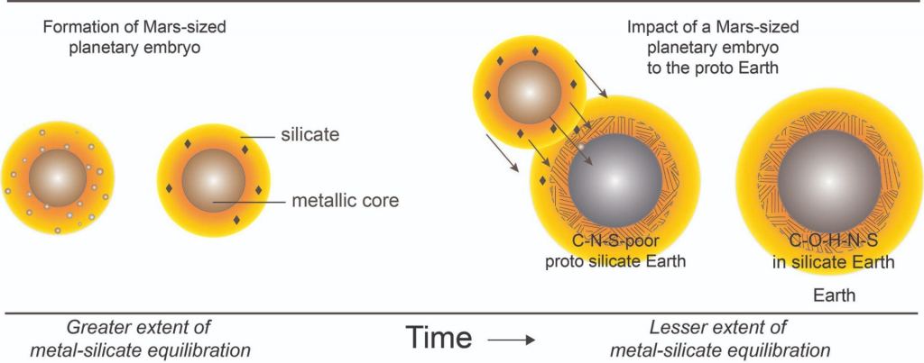According to the team behind the study, the impacting planet had a sulfur-rich core, while its mantle and crust contained volatiles. When it collided with the Earth, it injected the chemicals necessary for life, like nitrogen, carbon, hydrogen and sulfur, into the Earth's crust. The collision also ejected massive amounts of material into space, which coalesced into the Moon.