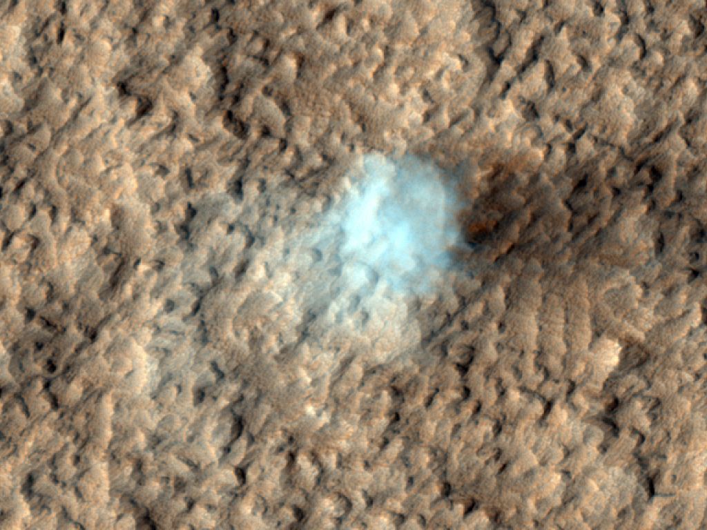 The best picture of Martian dust devils is this next one. It features tracks left by a plethora of dust devils traversing the surface of Mars. The devils often uncover a hidden layer of a different soil type, and the colors contrast, creating this trippy image of wind-driven art.