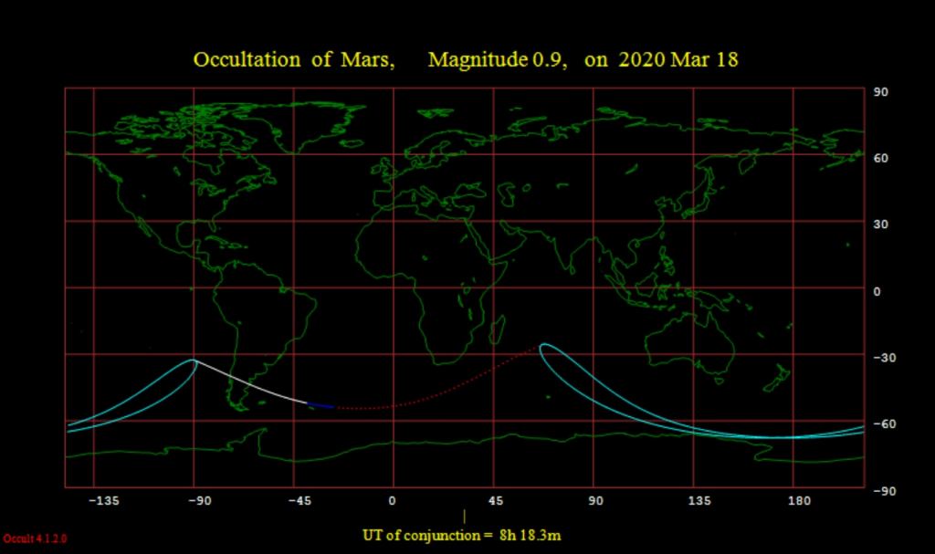 Best occultation of a planet by the Moon in 2020: Watch for the waning crescent Moon to occult Mars for North America Feb ruary 18 th . There are 10 occultations in 2020 involving the Moon and four planets:
