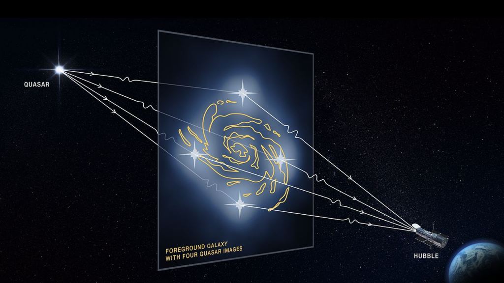 Recently a team measured this scale by looking at seven lensed quasars. This is where a distant quasar has a galaxy in front of it from our perspective. Light from the quasar is deflected around the galaxy like a lens. By measuring these lensed quasars, the team could narrow down the scale of dark matter. From this, they determined the temperature of dark matter, and thus a minimum mass for dark matter particles.