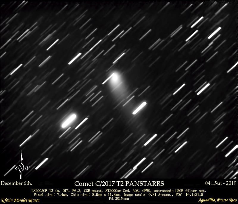 This one has been a long time coming. Discovered on the night of October 2nd, 2017 by the PanSTARRS survey, C/2017 T2 PanSTARRS was 8.5 Astronomical Units (AU) from the Sun, just inside the orbit of Saturn at the time of discovery. Although it was shining at a faint +19thmagnitude at the time, such a distant discovery suggested that the find could be an intrinsically bright object.