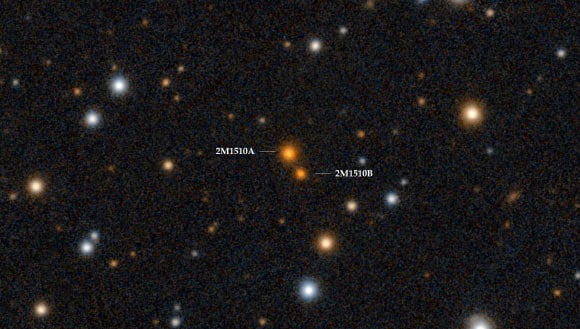 The two brown dwarfs orbit each other once every 21 days, with 2M1510Aa the slightly more massive of the two at 40 Jupiter masses, versus its companion 2M1510Ab, at a leaner 39.3 Jupiter masses. Both are M-type brown dwarfs, and orbit a mutual barycenter only 0.063 AU (5.9 million miles or 9.5 million kilometers) apart.