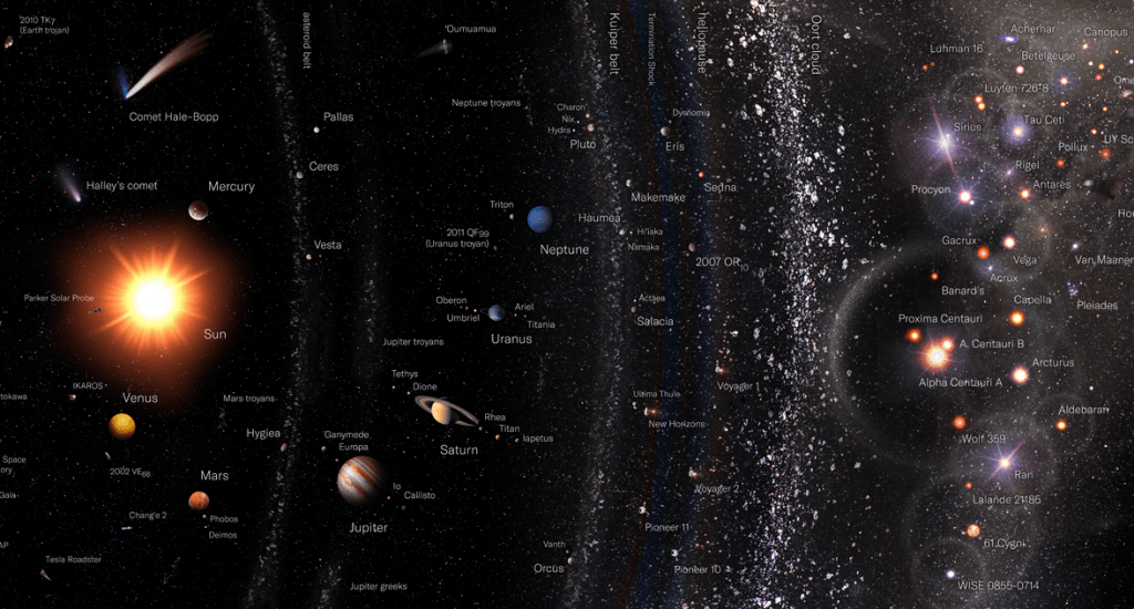 "The advantages to doing that are enormous – the entire system could be scouted and mapped before the first data ever reaches Earth. Notionally, the first sailcraft might spot a distant planet as a point of light that moves between images, and on that basis constrain its orbit so that the next sailcraft can maneuver to pass at closer range, resolving surface details. Subsequent sailcraft can build up maps, track surface features, and discover most of the planets and moons in the system over time."