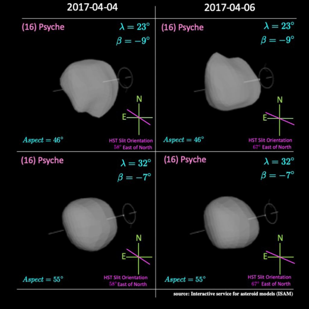 Becker and her team used Hubble to make high-resolution UV observations of Psyche taken in 2017 with the observatory's Space Telescope Imaging Spectrograph (STIS). They observed the asteroid at two specific points in its rotation to view both sides of Psyche completely at ultraviolet (UV) wavelengths.