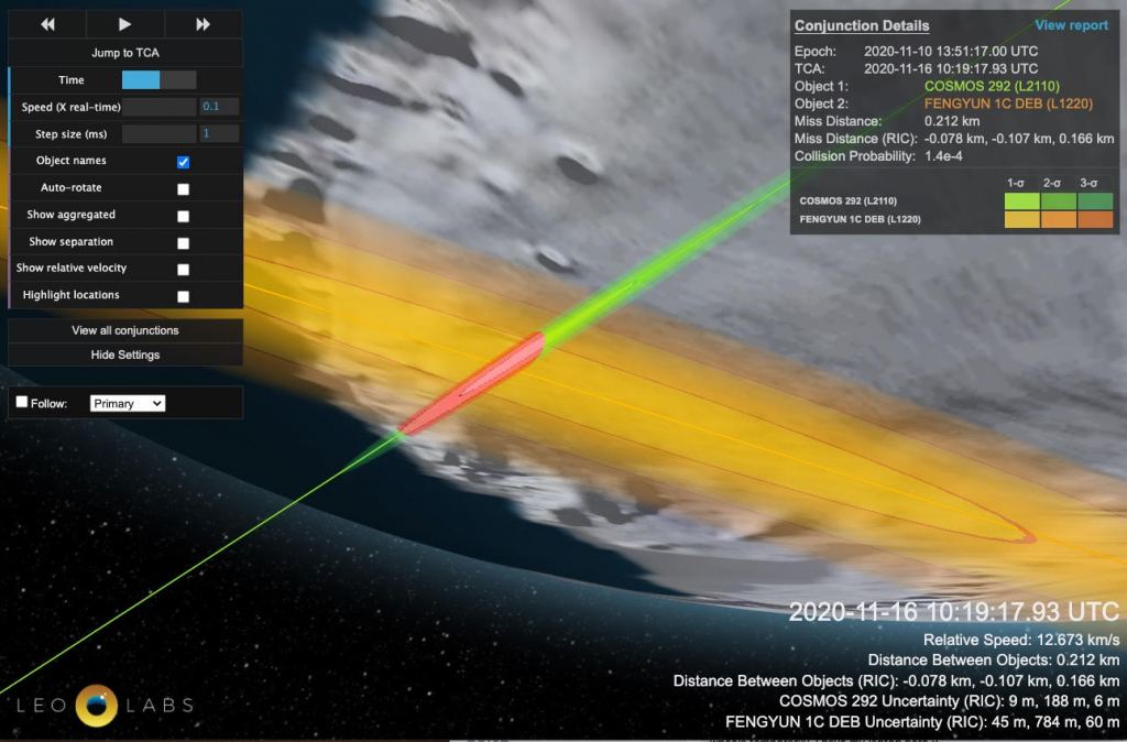 Collisions and near misses (thankfully MUCH more common) are predicted by LeoLabs and can even be visualized by the members of the public here. The software gives estimates of the likelihood of a collision and even estimates the relative speed of the two objects, giving an idea of the energy involved in these collisions. "Low-speed" collisions happen around one kilometer per second, while higher speed head-on collisions can occur well over 12 kps.