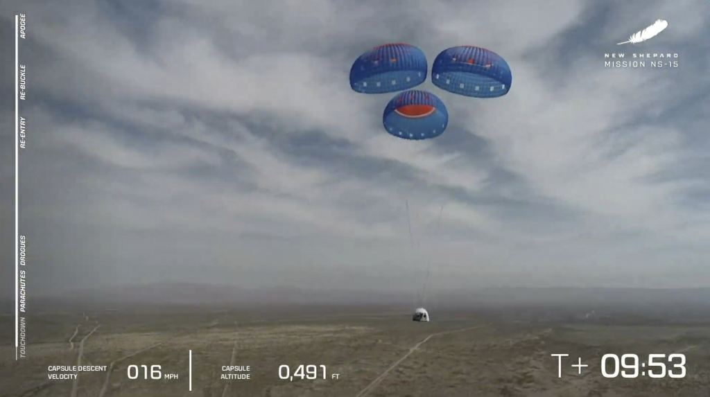 The mission lasted a total of 10 minutes and 10 seconds and achieved a maximum velocity of 3,596 km/h (2,234 mph). It was not only the fifteenth time the New Shepard flew to space, it was the sixteenth consecutive time that the capsule landed successful, which includes a pad escape test in 2012. It is also likely to be Mannequin Skywalker's last spaceflight, as it is being donated to the U.S. Space and Rocket Center.