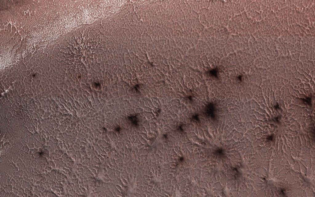 This process of sublimation and exchange between the poles is also responsible for notable geological features on Mars, such as the araneiform terrain (aka. "spiders") near the South Pole and the way the dune fields in the northern planes become furrowed with the arrival of seasonals. As Haifeng explained, understanding the relationship between the seasonal polar caps and the formation of geological features on Mars could lead to a better understanding of the Martian environment.
