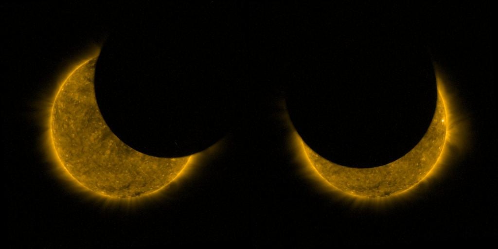 Finally, solar observing missions in low Earth orbit including JAXA's Hinode spacecraft and ESA's Proba-2 may provide brief views of the eclipse from space, as they swoop through the Moon's shadow. GOES weather satellites may also nab the umbral shadow on the Moon crossing the Arctic, as they look back at the Earth (it's happened before).
