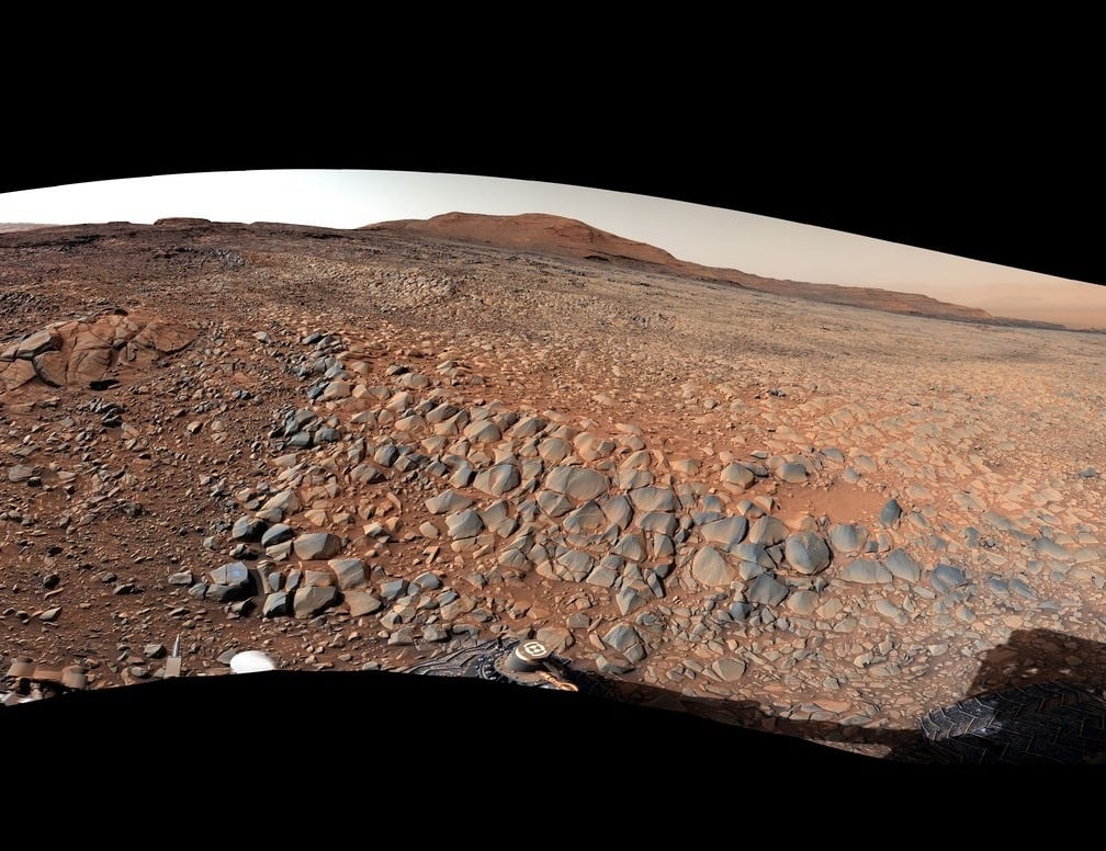 The Greenheugh Pediment is a broad, sloping plain near the base of Mount Sharp that measures about 2 km (1.2 mi) across (see animation above). Curiosity's mission team first learned of the feature thanks to images taken by NASA orbiters before the rover landed in the Gale Crater in 2012. Scientists are eager to learn more about its formation since it's rich in mineral-bearing clays that form in the presence of water and sticks out as a standalone feature near the base of Mount Sharp.