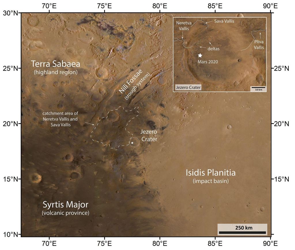 A new paper detailing the first 216 days of Perseverance's mission in Jezero Crater reports how the newest rover on Mars appears to be located in a "dust storm track" that runs north to south across the planet. Jezero Crater has particularly high levels of dust and wind activity.