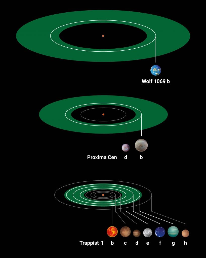 Wolf 1069 b is only 31 light-years away, making it the sixth closest Earth-mass planet in its star's habitable zone. Its proximity, as well as its potential habitability, make it a star candidate for more detailed follow-up study. It's in the same class as Proxima Centauri b and TRAPPIST-1 e. All three are suitable candidates in the search for biosignatures. But since Proxima Centauri b and Wolf 1069 b were both found using the radial velocity method, they're not targets for the usual spectroscopy. They don't pass between us and their star, so there's no opportunity for the JWST or any other telescope to examine their atmospheres. Astronomers will have to wait for their opportunity.