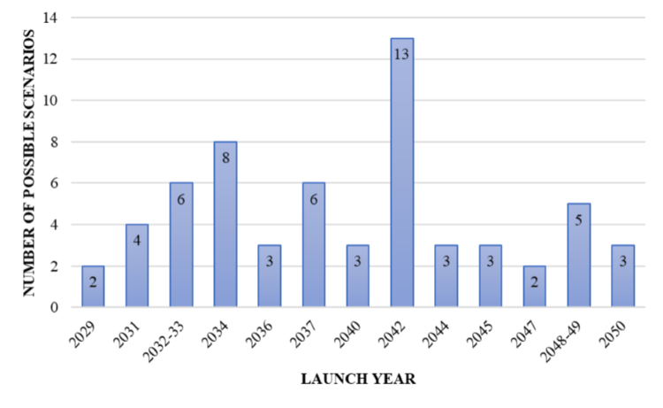 For the study, Zubko examined the potential for conducting flybys of 117 asteroid candidates with diameters greater than 1 km (0.62 miles) using the Solar System Dynamics catalog from NASA JPL, referring it his plan as an Earth-Venus-Asteroid-Venus flight plan that could potentially occur using launch dates between 2029 and 2050. Using a variety of calculations, Zubko found 53 mission scenarios with 35 asteroid targets between 2029 and 2050 where a spacecraft could encounter an asteroid while en route to Venus.
