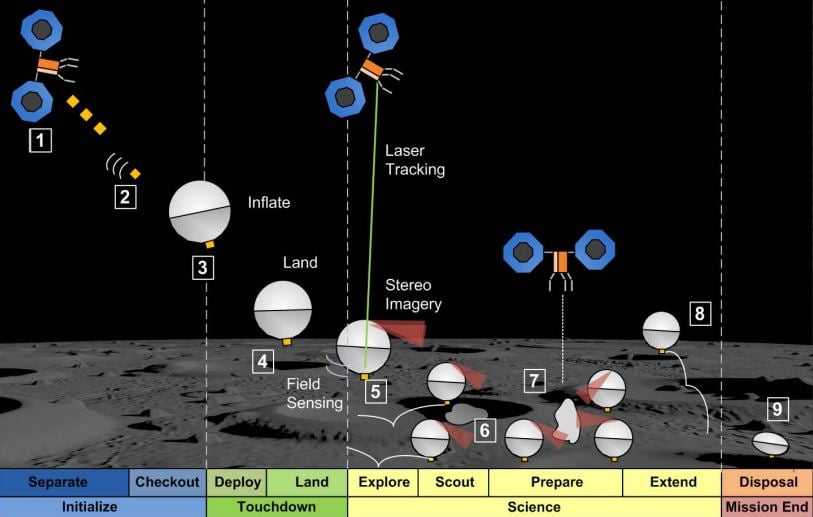 One way to utilize these various sensors is to use another feature of AMIGO - its ability to bounce. When fully deployed from its 1U packaging, it expands to about 1m in size. There's still some debate on what exactly the inflatable surface will be made out of and what exactly it will be inflated with. Still, the underlying idea is creating a protective, hard-to-damage shell around most of the scientific components.