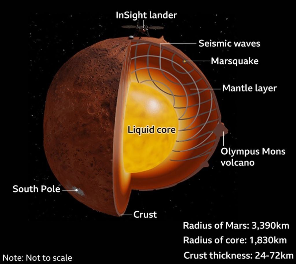 NASA's InSight mission deployed the first seismometer on the surface of Mars. It recorded "Marsquakes," and it has also helped determine the layering and thickness of the planet's crust, the structure of the mantle, and the size of Mars' core and its composition. Data from InSight is helping planetary scientists to work out the internal structure of Mars. Lekic and his colleagues say that InSIght has now revealed, surprisingly, the molten silicate layer overlying the planet's metallic core.