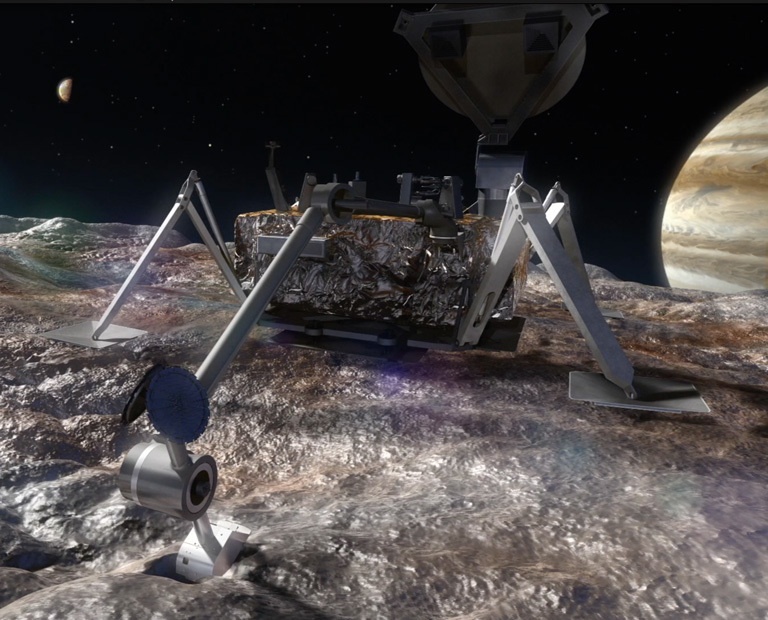 In 2024, NASA will launch the Europa Clipper, the long-awaited orbiter mission that will fly to Jupiter (arriving in 2030) to explore its icy moon Europa. Through a series of flybys, the Clipper will survey Europa's surface and plume activity in the hopes of spotting organic molecules and other potential indications of life ("biosignatures"). If all goes well, NASA plans to send a follow-up mission to land on the surface and examine Europa's icy sheet and plumes more closely. This proposed mission is aptly named the Europa Lander.