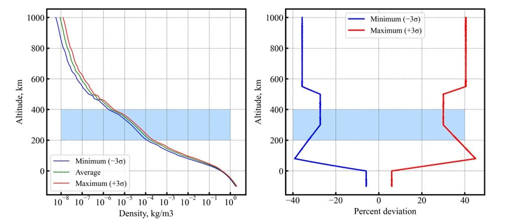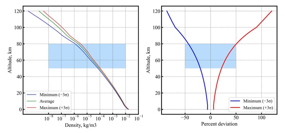 The altitude range of 200–400 km is the area where aerocapture would be most effective and Girija says the expected density variation of 30% "must be taken as an 'optimistic' estimate until in-situ data becomes available. The actual uncertainty may be much higher."