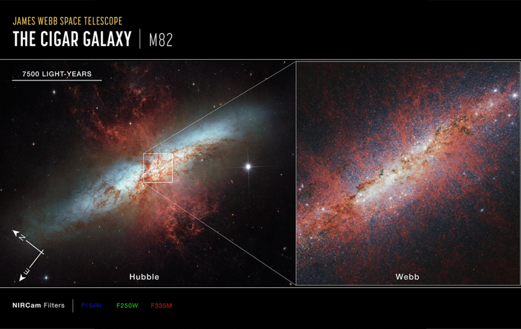 "Webb's observation of M82, a target closer to us, is a reminder that the telescope excels at studying galaxies at all distances. In addition to looking at young, high-redshift galaxies, we can look at targets closer to home to gather insight into the processes that are happening here – events that also occurred in the early universe."