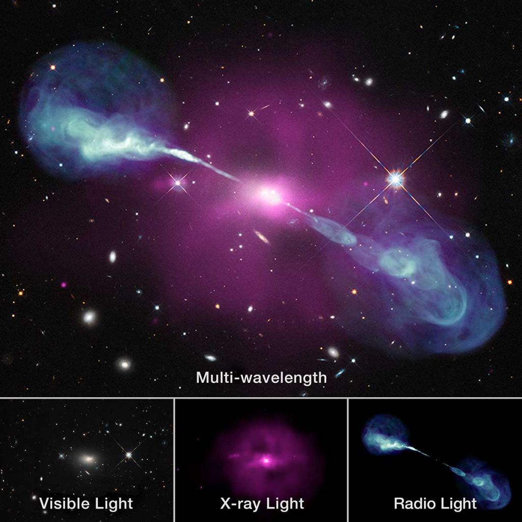 Quasars are a sub-type of AGN that are extremely luminous and distant, and quasar observations show that SMBHs were present in the centers of galaxies as early as 700 million years after the Big Bang. But their origins were a mystery. Astrophysicists think that these early SMBHs were created from black hole "seeds" that were either "light" or "heavy." Light seeds had about 10 to 100 solar masses and were stellar remnants. Heavy seeds had 10 to 105solar masses and came from the direct collapse of gas clouds.
