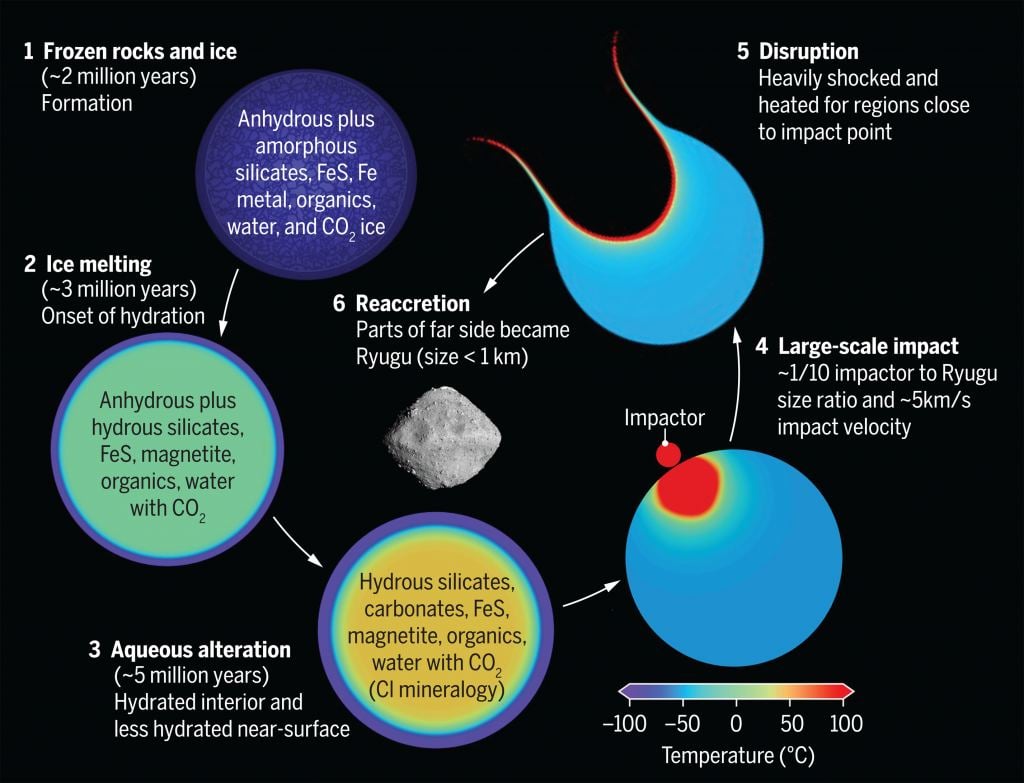 This research helps paint a timeline of Ryugu's parent and Ryugu itself on its long journey through the Solar System.