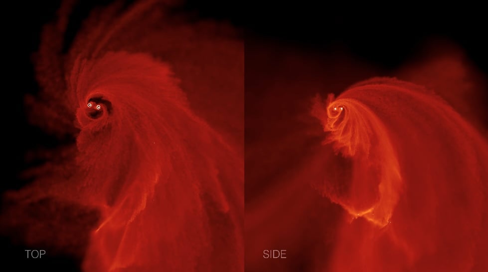 Based on the data, the black holes have a combined mass of about 40 million Suns, and they orbit each other every 130 days. If they continue along their paths, the two black holes will merge in about 70,000 years. Without the passing cloud, we would have never noticed them.