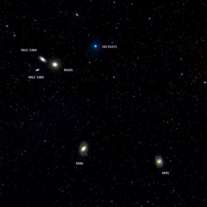 If the skies are right to see this galactic pair, you will see another star just south of your last marker. M95 and M96 are between these last two stars. The pair can barely be seen in larger binoculars and are perceivable in a small telescope, though they are faint. A larger aperture will bring out far more details. Because these are fainter galaxies, they require a dark sky location and cannot tolerate background glow, such as moonlit nights.