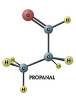 The 8-atom molecule propenal and the 10-atom molecule propanal were detected in a large cloud of gas and dust some 26,000 light-years away in an area known as Sagittarius B2. Such clouds, often many light-years across, are the raw material from which new stars are formed.
