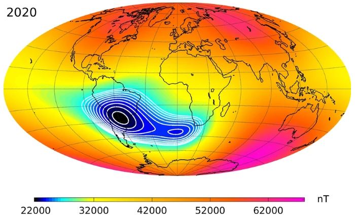 Scientists are learning that the magnetic shield isn't static. There are anomalies. One of them is the South Atlantic Anomaly, a region where the magnetic field is weakest near Earth. When satellites pass over this region, they're exposed to higher levels of ionizing radiation. The anomaly is likely caused by a reservoir of dense rock inside Earth, illustrating how complex the magnetic shield is.