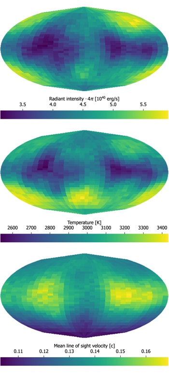 The researchers said that with a 3D model, the observed light can be predicted for any viewing direction. For example, when viewed nearly perpendicular to the orbital plane of the two neutron stars (as observational evidence indicates for the kilonova AT2017gfo) the model predicts a sequence of spectral distributions that look remarkably like the observations for AT2017gfo.