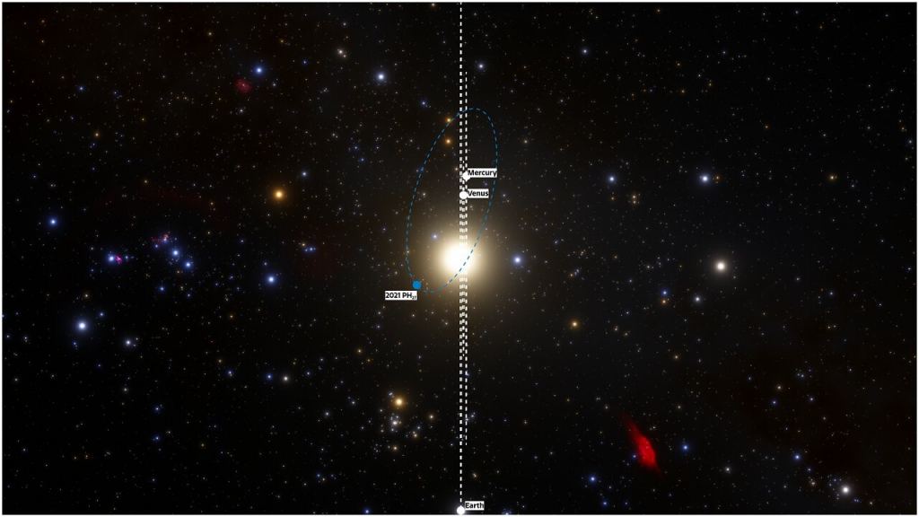 Asteroid 2021 PH27 was discovered earlier this month, and it has the shortest orbital period of any known asteroid in the Solar System. The orbit of the approximately 1-kilometer-diameter asteroid brings it as close as 20 million kilometers (12 million miles or 0.13 au), from the Sun every 113 days.