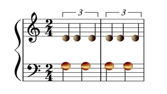 "This is comparable to several musicians beating distinct rhythms, yet who beat at the same time at the beginning of each bar. Here, “about” is important. Besides the ubiquity of the 3:2 period ratio, this constitutes the originality of the system."