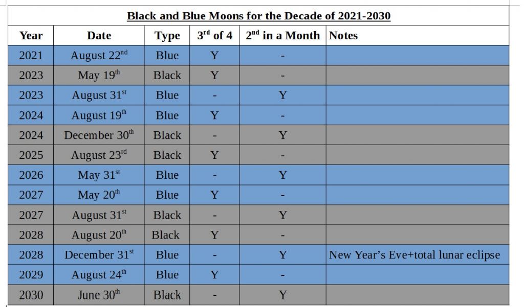 This is also the last Blue Moon for the decade… Here's list of Moons (Black and Blue) for the coming decade: