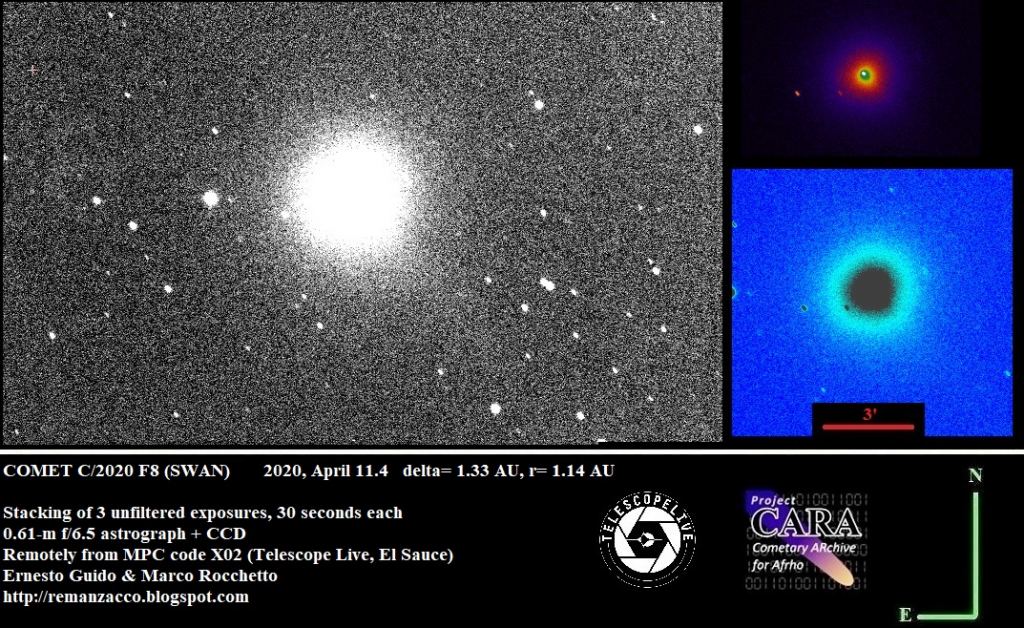Lead image: Newly discovered Comet C/2020 F8 SWAN, imaged using the remote Q56 Telescope Live in Australia. Image credit: E. Guido, M. Rocchetto, and A. Valvasori.