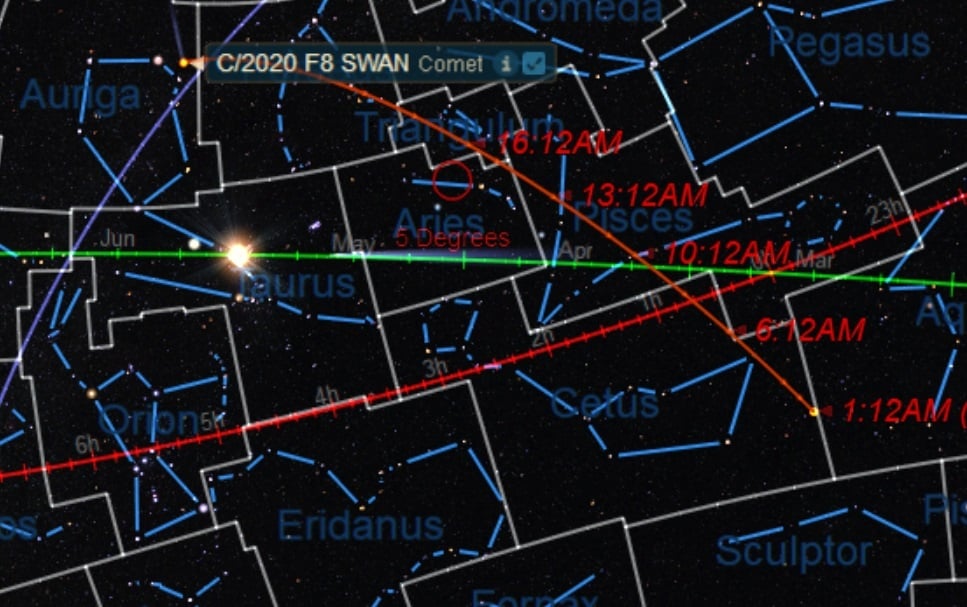 Here's our look at dates with celestial destiny this Spring for Comet F8 SWAN:
