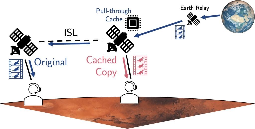 This latest work looks at what it would take to have an edge computing network around Mars. The key is not only to have data locally accessible, but also to have a certain level of redundancy. So they propose building a constellation of satellites around Mars. Their system would have 9 satellites each in 9 orbital planes, for a total of 81 satellites. As with many constellations, the satellites would communicate with each other to have redundant backups of data. This means various landing sites on Mars would be able to communicate with 2 or 3 satellites at any given time. For extended missions, ground-based servers could be used for even faster data retrieval.