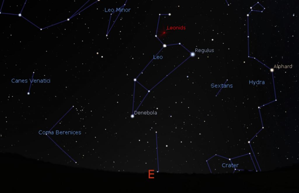Will the Leonids 'ramp up' in the coming decade? Keep in mind, the quoted zenithal hourly rate (ZHR) for a given shower is the number you would see with optimal conditions, under a dark, moonless sky with the radiant directly overhead… most of us will see considerably less. Many neophyte observers get excited about the hype leading up to a meteor shower, only to be frustrated by the reality of seeing few if any meteors under light-polluted skies. Be patient, and search out a good dark sky site for best results. Tracing a meteor trail back to the 'Sickle of Leo' asterism identifies its membership as a Leonid… otherwise, the meteor may be a background sporadic, or a member of another shower. In November, the Taurids are also active, and the December Geminids are also spooling up. For best results, watch in the early morning hours, when the Earth is meeting the Leonid meteor stream head-on.