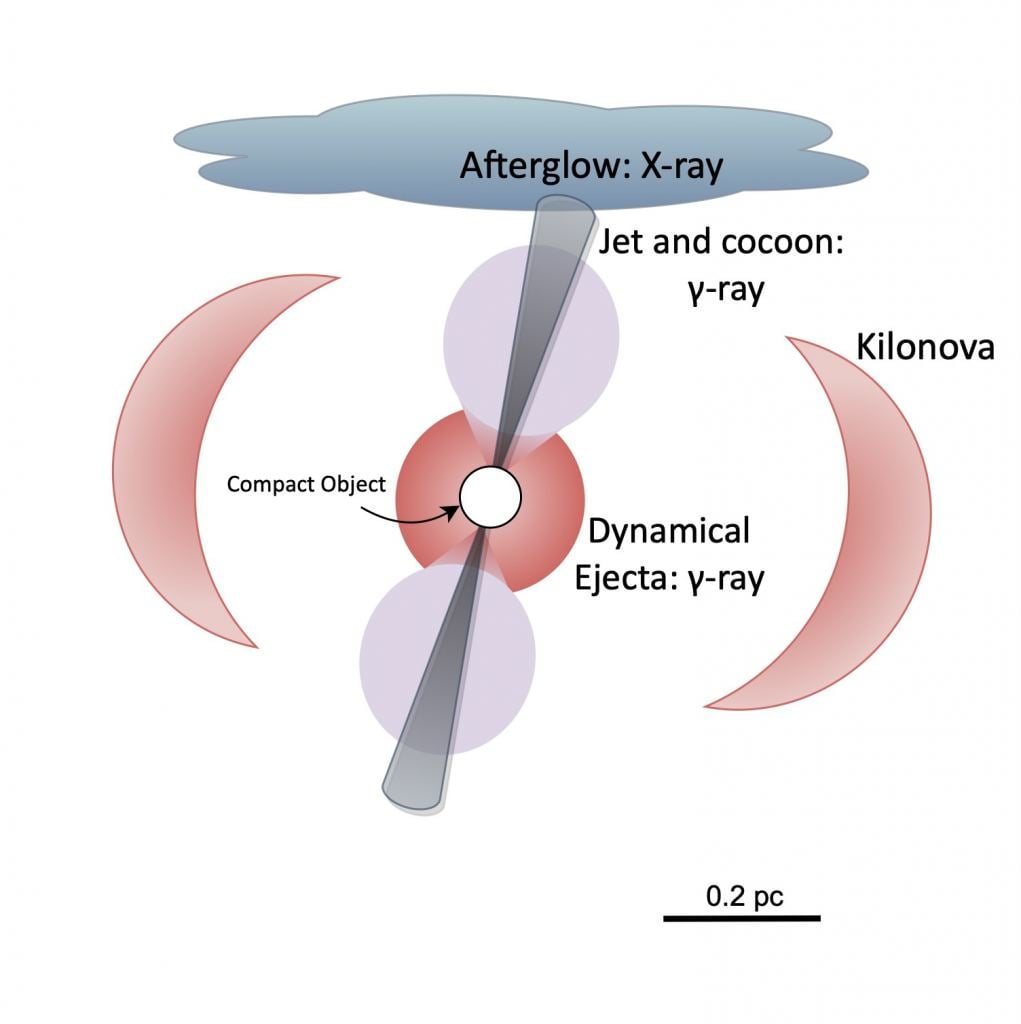 The study is based on a neutron star merger observed in 2017. It was detected optically as a gamma-ray burst (GRB) and gravitationally as a compact object merger. This means we have good data on the masses and distances of the original neutron stars as well as the amount of energy they produced. The team then supplemented this data with theoretical simulations.