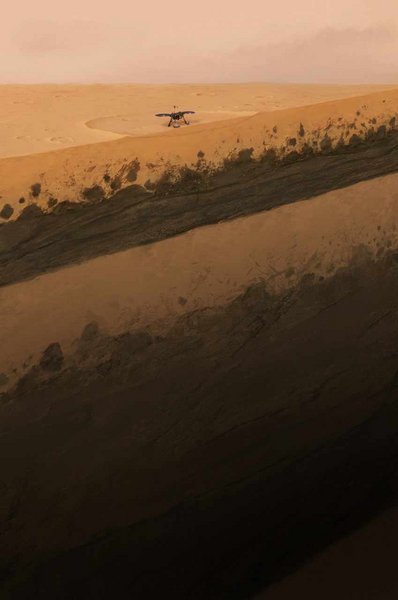 The team was able to date the pair of solidified lava flows that sandwich the sedimentary layer. They found that the shallower lava layer is about 1.7 billion years old when Mars was in its Amazonian Period. The deeper layer is about 3.6 billion years old, from Mars' Hesperian period when the planet was undergoing widespread volcanic activity. The authors think that the sedimentary layer is either between the basaltic layers or embedded within the deeper, older layer.