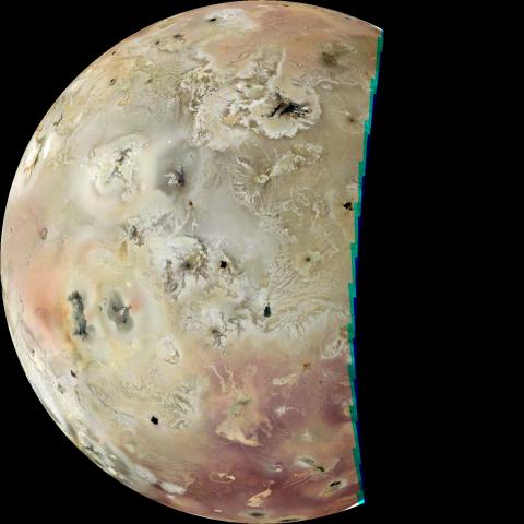 "Io is simply littered with volcanoes, and we caught a few of them in action," said Juno principal investigator Scott Bolton during a news conference at the European Geophysical Union General Assembly in Vienna, Austria. "There is amazing detail showing these crazy islands embedded in the middle of a potentially magma lake rimmed with hot lava. The specular reflection our instruments recorded of the lake suggests parts of Io's surface are as smooth as glass, reminiscent of volcanically created obsidian glass on Earth."