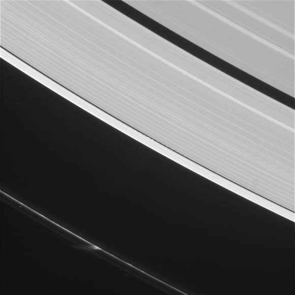 As one of Saturn's smallest moons - measuring just 8 km (~5 mi) in diameter - the existence of Daphnis had been previously inferred by astronomers based on the gravitational ripples that were observed on the outer edge of the Keeler Gap. This 42 km (26 mi) wide gap, which lies in Saturn's A Ring and is approximately 250 km from the its outer edge, is kept clear by Daphnis' orbit around the planet.